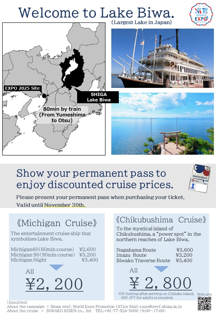 Expo staff can enjoy Lake Biwa cruises at a discounted price.